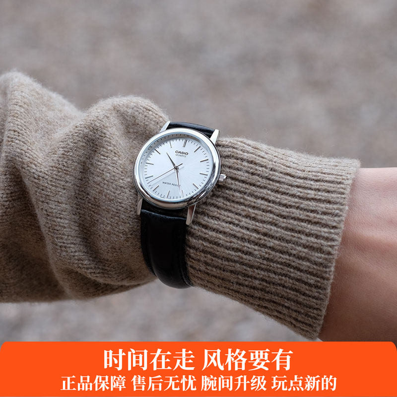 卡西欧手表绅士风皮带日历石英防水网红INS时尚男表MTP-V004L-1B