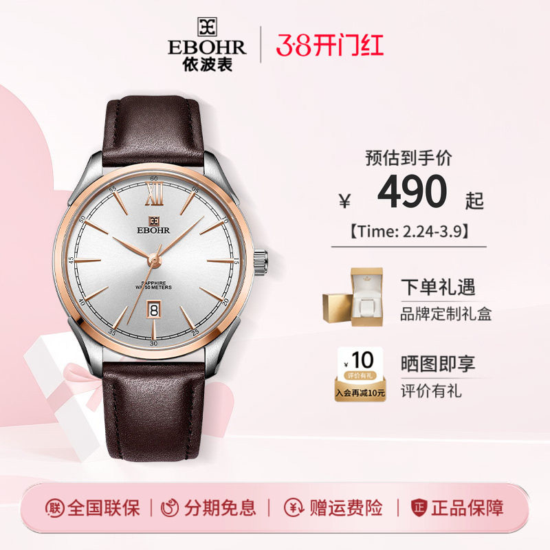 依波手表男表正品高级感绅士休闲皮带男款真皮防水男士手表5650