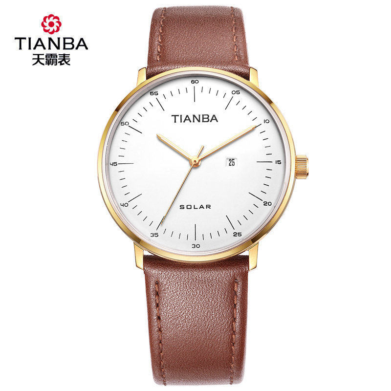 天霸光能表太阳能表简约男表女表皮带情侣表防水免换电池TB9001