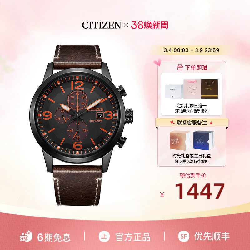西铁城官方正品官网休闲运动皮带防水计时光动能男表CA0617-11E