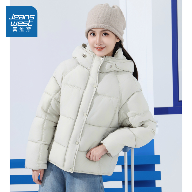 LY真维斯休闲棉服外套女冬季2025新款女士保暖加厚短款白色棉袄