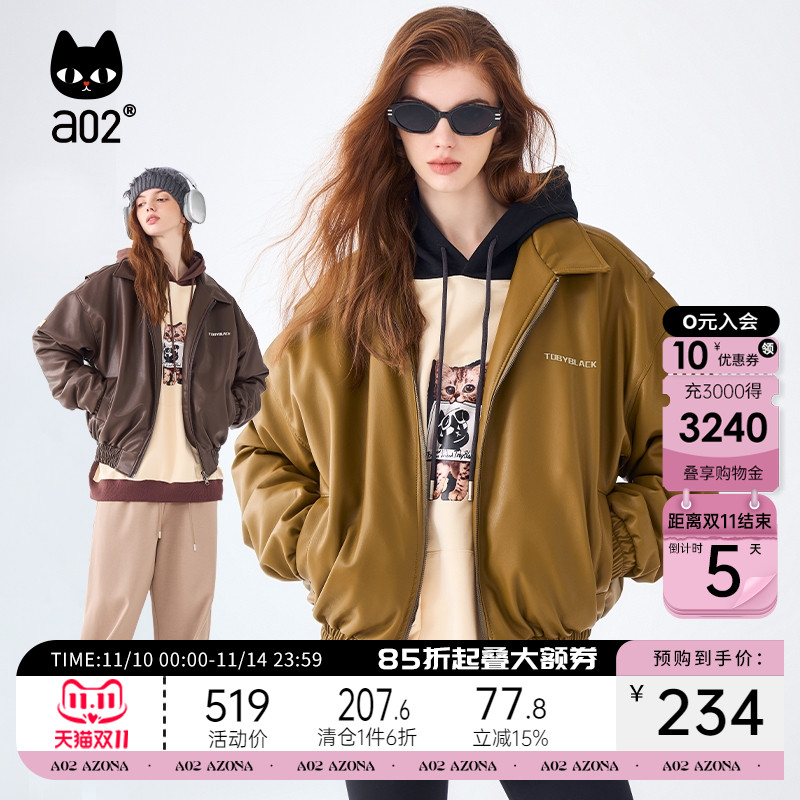 a02美拉德风女士皮革夹克型棉衣2025年冬季新款女装短款上衣外套