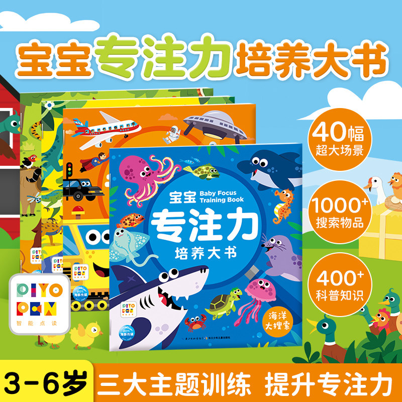 【点读版】宝宝专注力培养大书全4册儿童3-6岁宝宝视觉专注力科普玩具游戏书找不同数数找一找数学思维游戏图画故事书恐龙大搜索