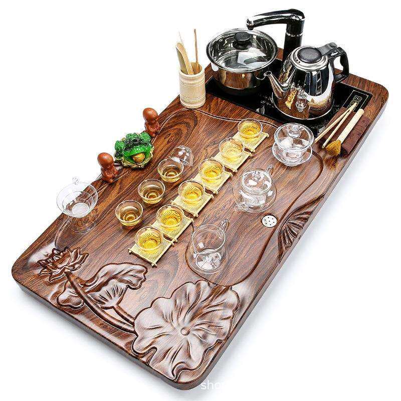 整套全自动功夫茶具套装家用实木茶盘组合四合一电热磁炉茶海茶台