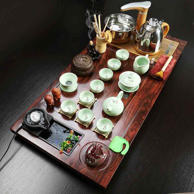 整套全自动汝窑功夫茶具套装家用乌金石茶盘四合一烧水壶茶海茶台