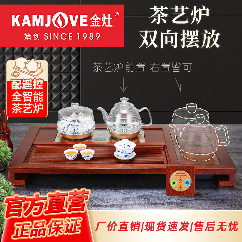 金灶 K-313古花木实木茶盘全自动茶具套装组合四合一整套茶具家用