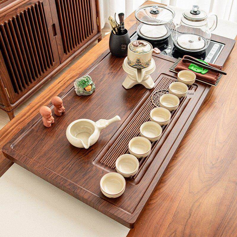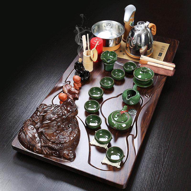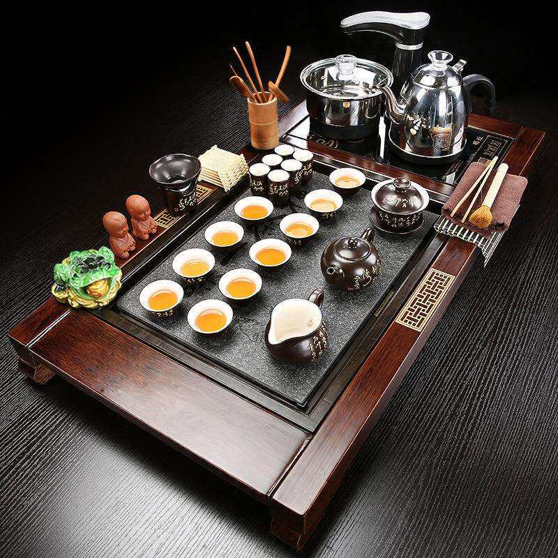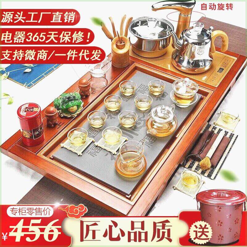 乌金石茶具套装家用实木茶盘整套功夫四合一电磁炉茶海茶台全自动