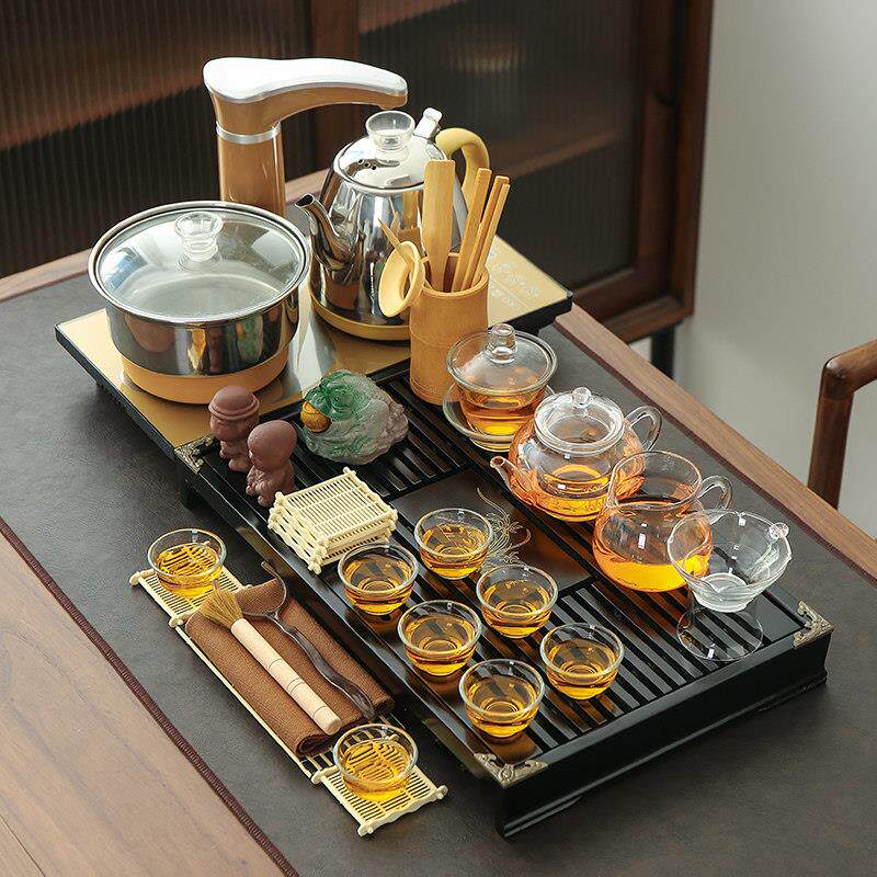 茶具套装家用整套仿乌金石英石z茶盘功夫底部上水四合一玻璃烧水