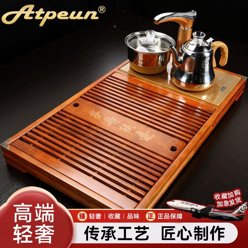 家用功夫茶具茶实木茶盘台茶海全自动电热炉四合一体大号简约茶托