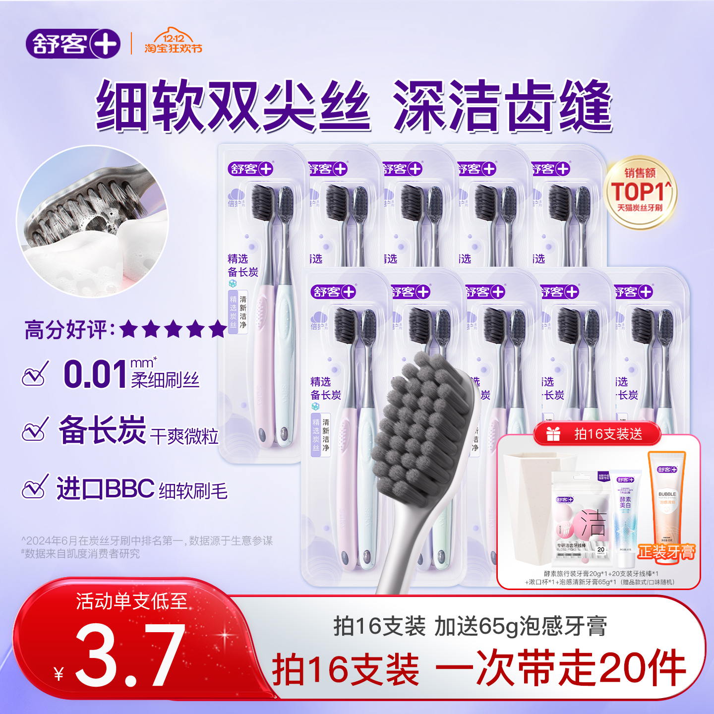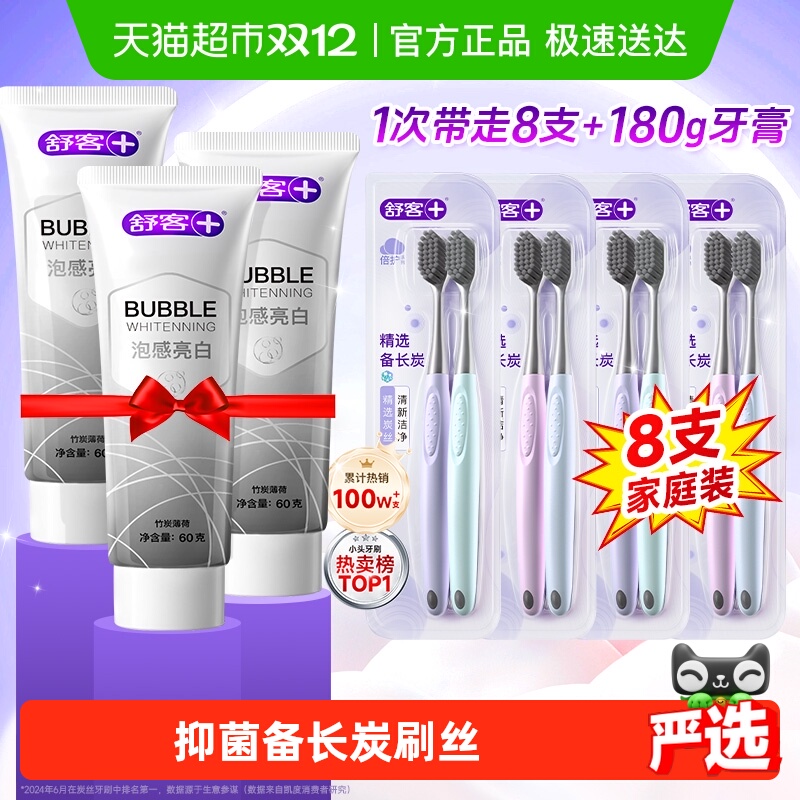 【包邮】牙刷舒客牙刷成人软毛家用炭丝能量男女小头牙缝刷家庭装