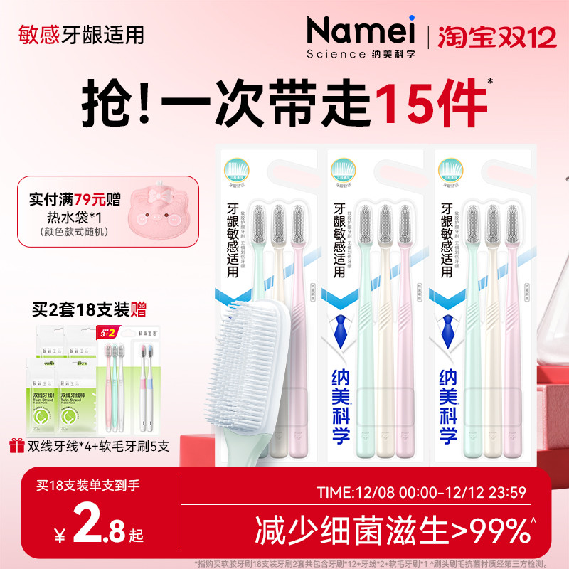 牙刷软毛成人超软细护龈纳米小头万毛情侣孕妇男士专用正品家庭装