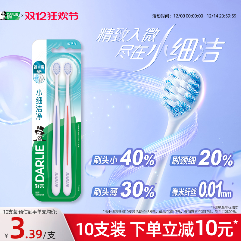 DARLIE好来原黑人小细洁小头软毛牙刷成人情侣牙刷男女专用官方