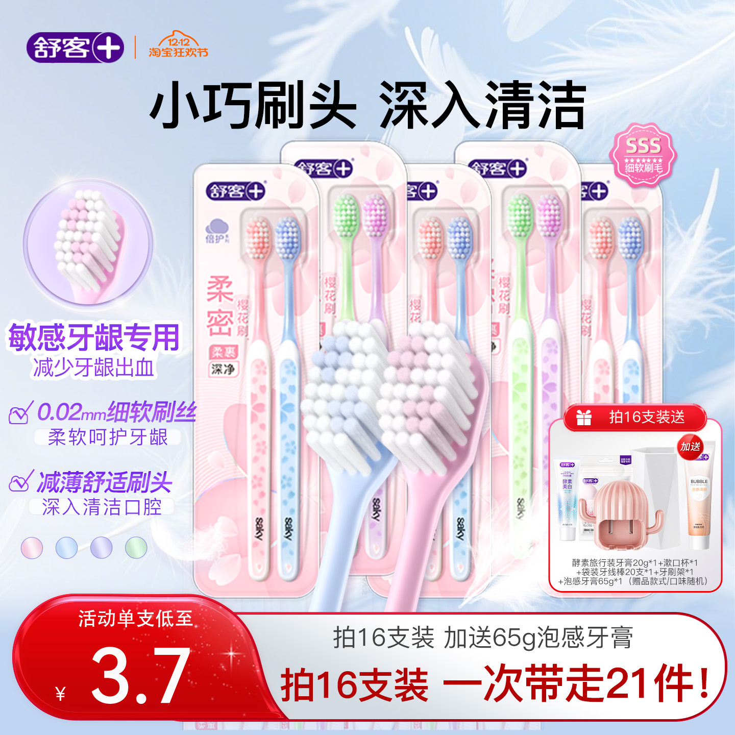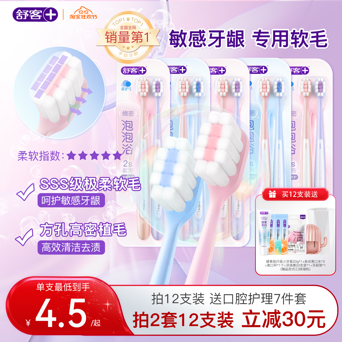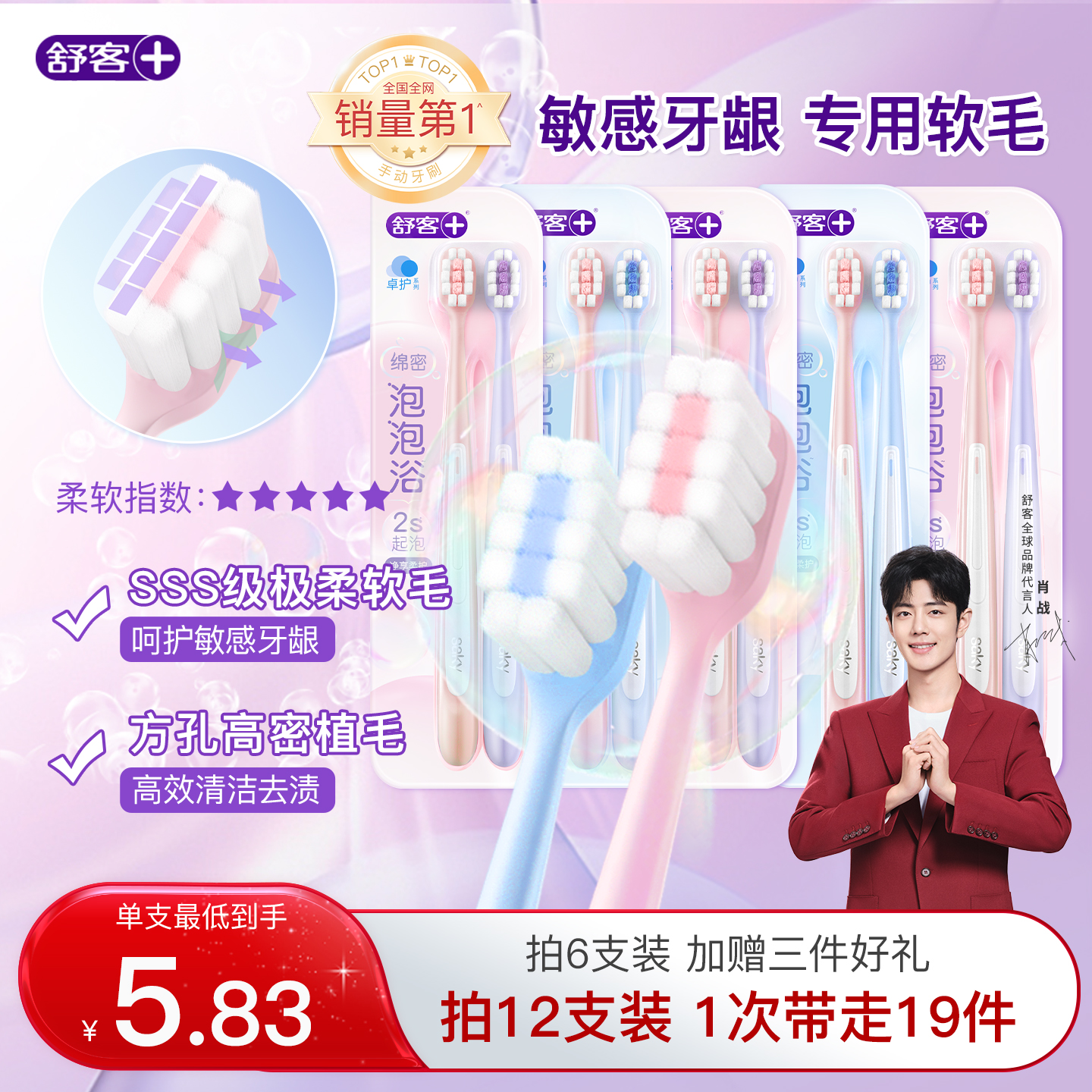 舒客密泡牙刷软毛牙刷成人小头家庭装品牌官方旗舰店男士女生专用