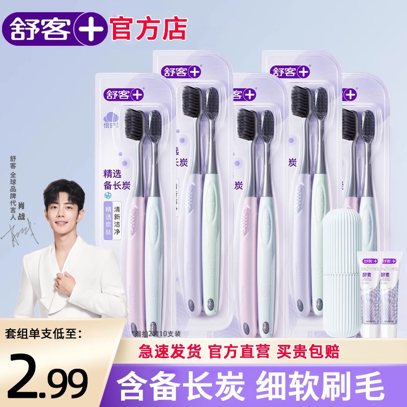 【买1套送1套】舒客牙刷软毛成人情侣小头家庭装品牌官方旗舰店