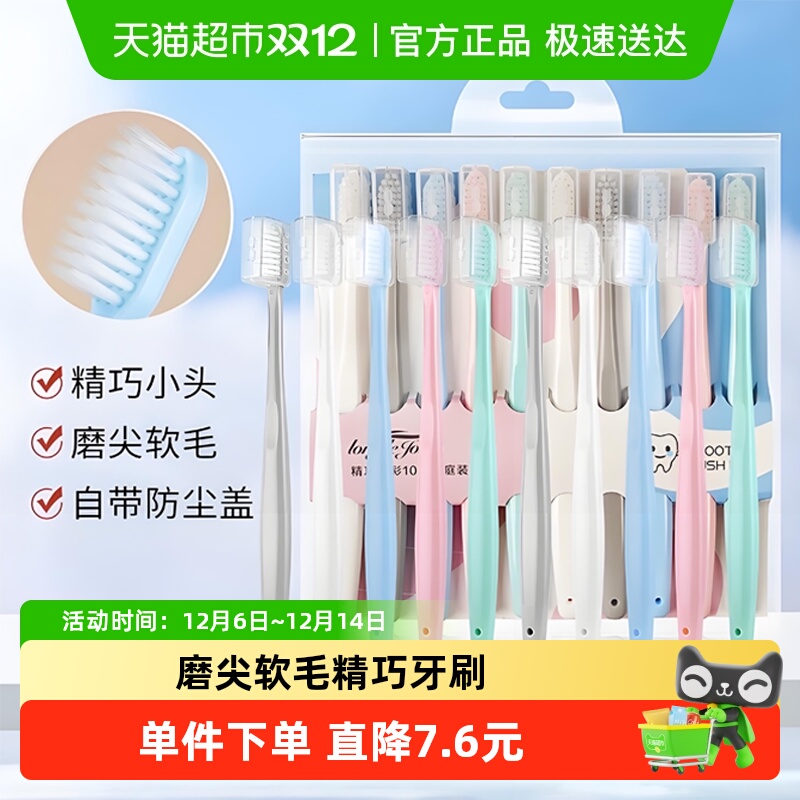 牙刷成人软毛大人家用家庭装小头超细超软情侣女生男士专用10支装