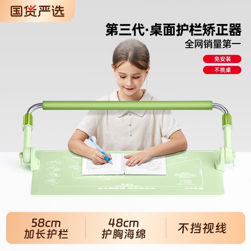 猫太子护栏矫正器绿色桌面款加长杆坐姿纠正器防近视写字架小学生写作业防低头神器儿童防驼背姿势支架书桌款