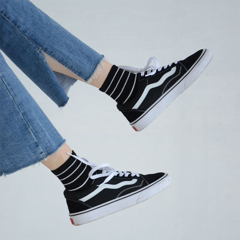 @不会丢的袜子 日系原宿BF分黑白条纹中筒袜男女运动潮流滑板长袜