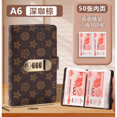 存钱夹钱册2025年新款现金存钱本密码锁儿童理财大容量钞票收纳册可放5万10万高级记账本纸币收藏册存钱神器