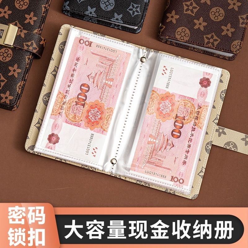 密码锁现金存钱本10万存钱夹钱册2025年新款理财收纳袋存钱收纳包现金收纳册纸币收藏册防氧化攒钱本存钱神器