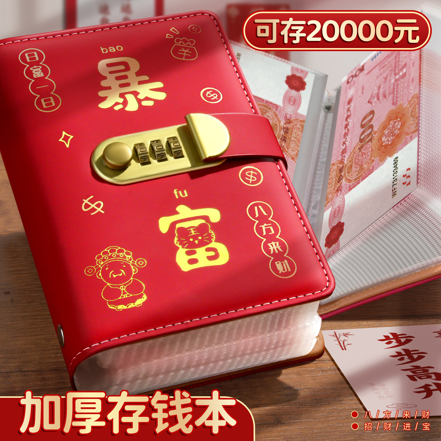 存折本暴富密码锁钱包可放现金大容量收纳册袋人民币纸币收藏册子