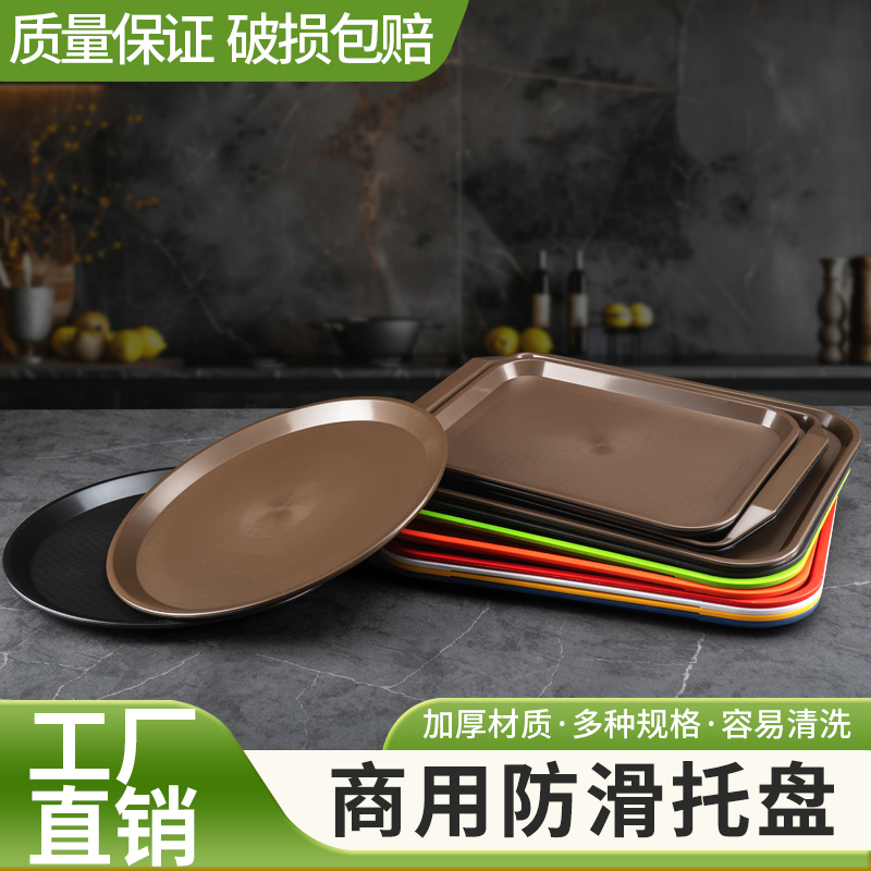 防滑托盘商用餐饮饭店酒店餐厅上菜传菜专用托盘长方形圆型大拖盘