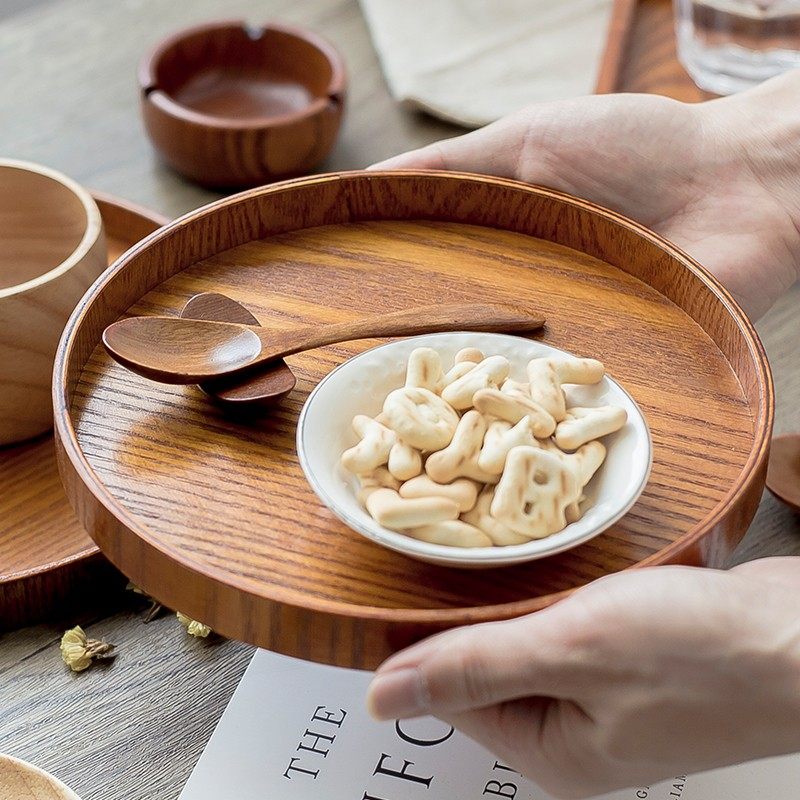 酒店圆形方形餐厅餐饮托盘茶盘茶杯盘日式实木盘子木质托盘收纳盘