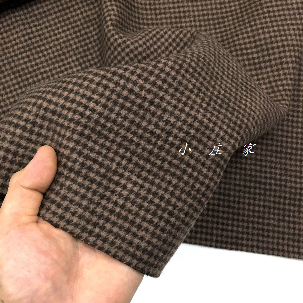 经典款咖啡色小千鸟格子双面羊绒面料 秋冬 柔软 垂坠 大衣 布料