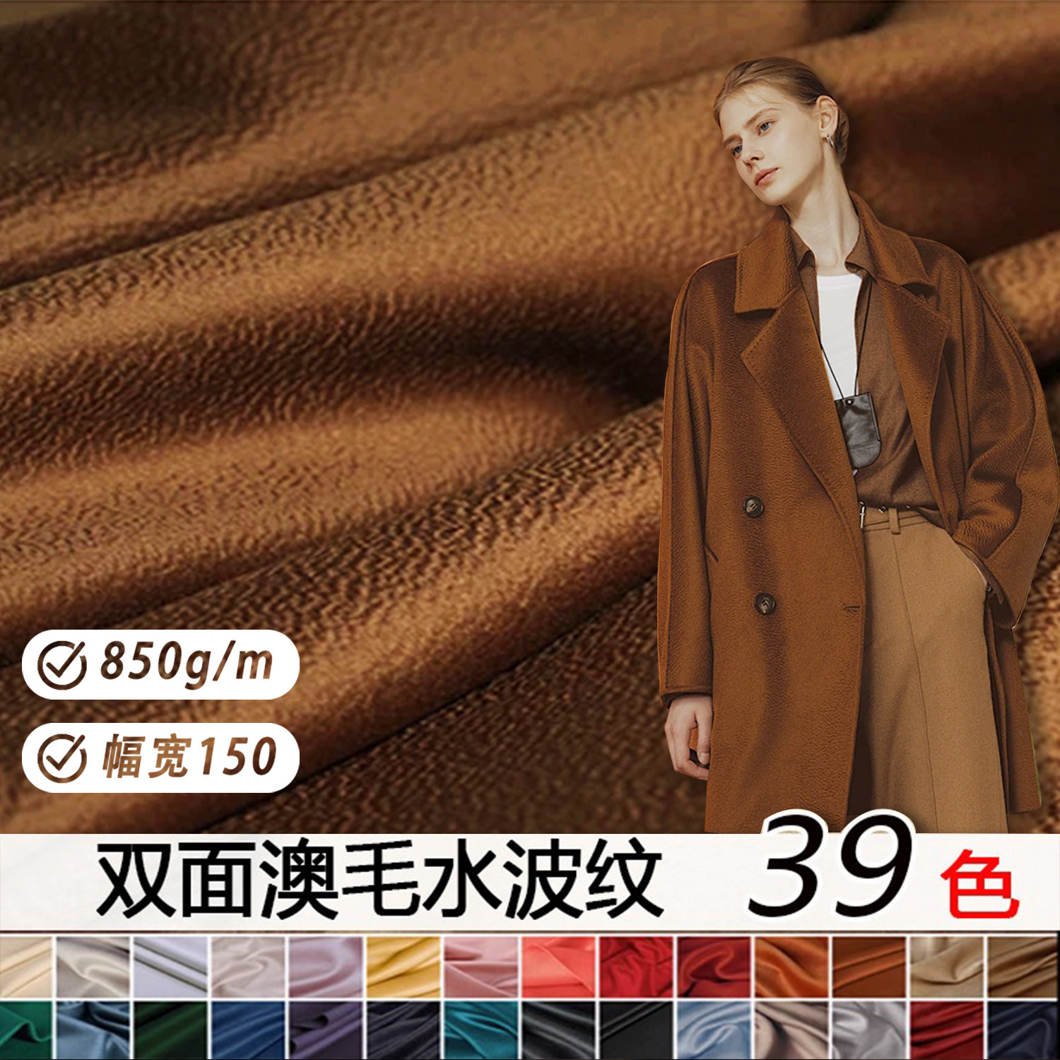 2025双面水波纹羊绒面料桑蚕丝羊毛大衣秋冬双层毛呢服装纯色布料
