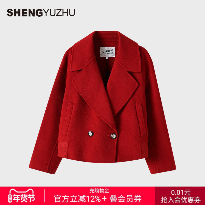 声雨竹2025秋季新通勤短款毛料外套气质山羊绒面料单排羊毛呢外套
