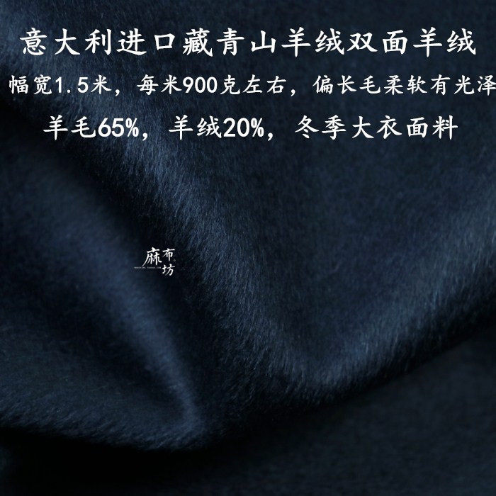 麻布坊进口高端藏蓝单面薄款羊绒面料柔软细腻含毛量高冬外衣适用