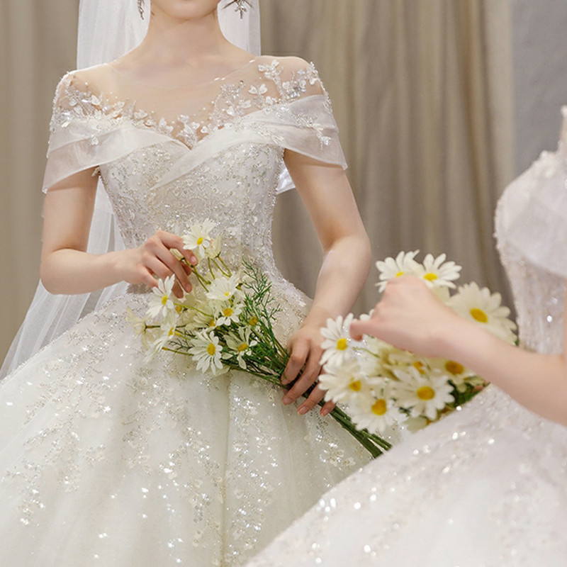 - 一字肩韩式拖尾婚纱