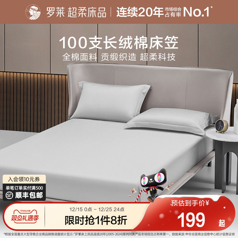 罗莱家纺100支床笠单件全棉纯棉长绒棉床罩防滑床单床垫套罩床套
