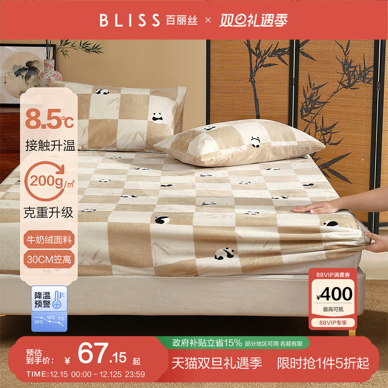 3秒速热牛奶绒床笠冬季加绒床罩珊瑚绒加厚床垫保护罩防滑单品套E