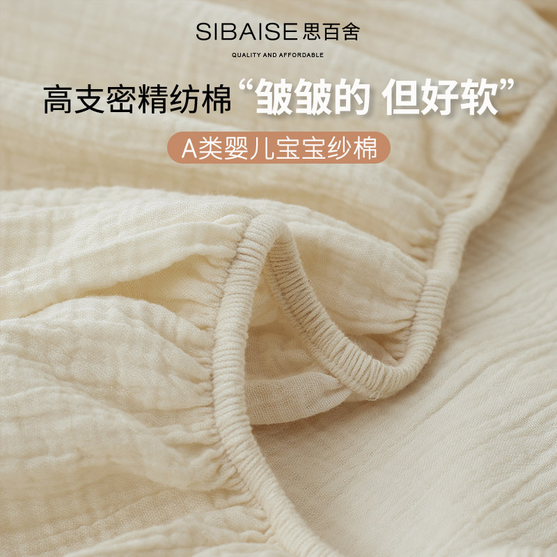 全棉双层皱皱纱床笠纯棉2025新款四季通用床罩A类席梦思床垫套单