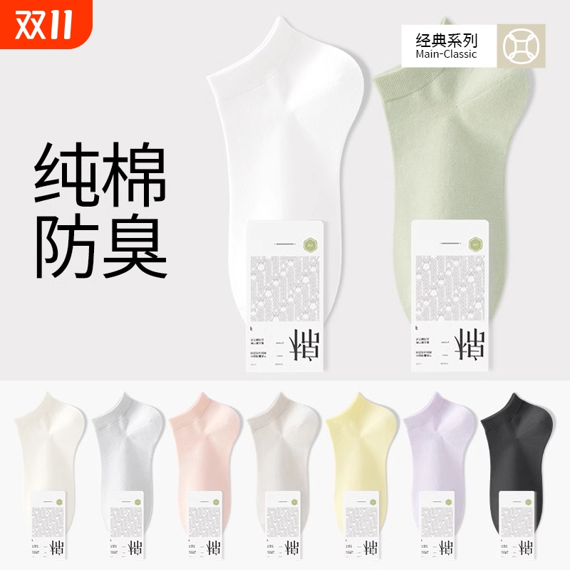 100%棉袜子男纯棉船袜秋季透气抗菌防臭抗起球短袜无骨全棉男袜