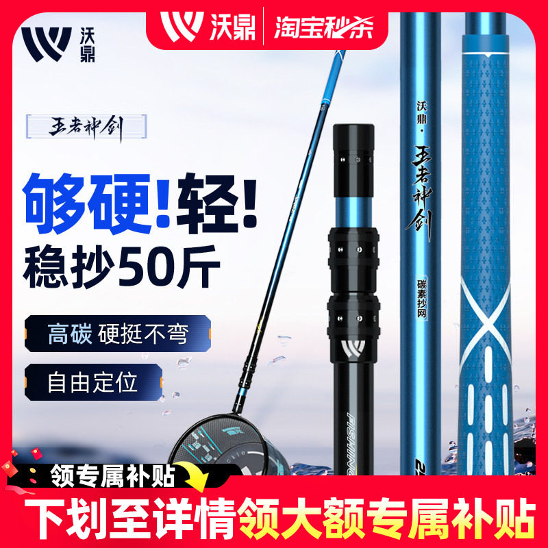 沃鼎王者神剑抄网竿碳素杆超轻硬伸缩裸竿钓捞鱼折叠大物网头全套