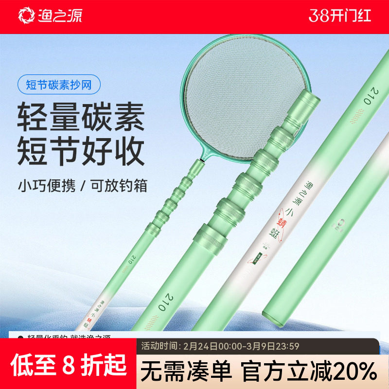 渔之源小蜻蜓短节抄网碳素抄网全套折叠捞鱼网兜大物伸缩抄网杆竿