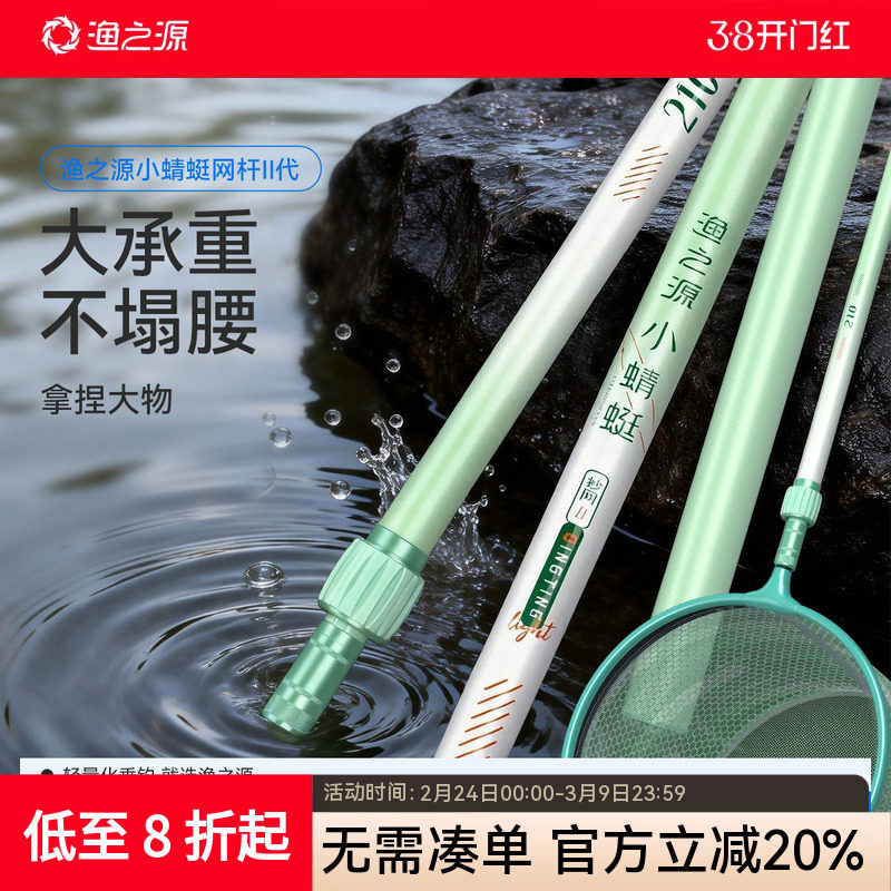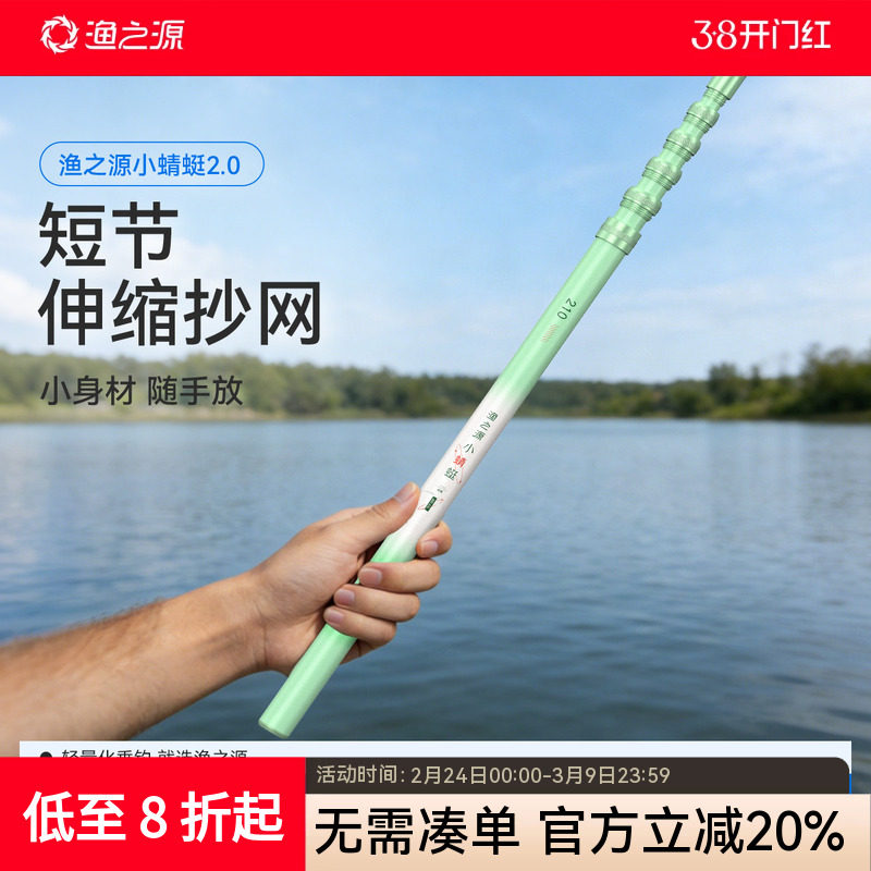 渔之源小蜻蜓短节抄网竿抄网全套折叠捞鱼网兜大物伸缩抄网杆抄网