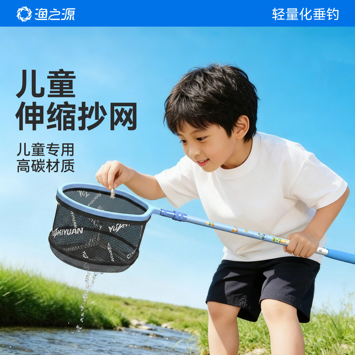 渔之源碳素儿童抄网捞鱼网捞小鱼虾捕虫捉蜻蜓蝴蝶网可伸缩抄网杆