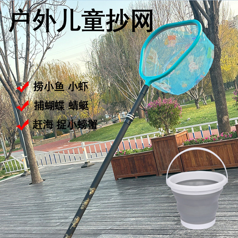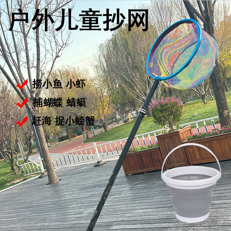 儿童用捞鱼网蜻蜓蝴蝶网兜抄兜捕虫网小孩渔网户外抄网伸缩杆捕鱼