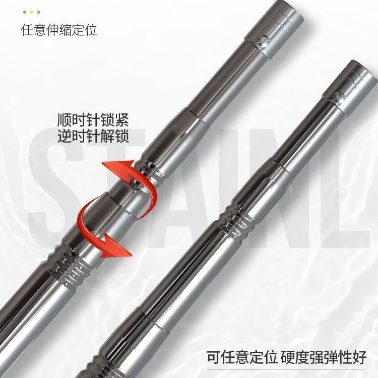加厚款 不锈钢压花伸缩抄网杆 8mm螺口自由定位鱼叉竿子 杆头焊接