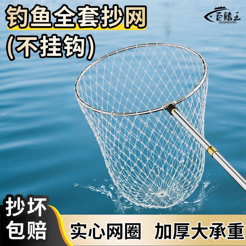 抄网捞鱼网抄网杆伸缩杆全套抄网头渔具用品收缩细眼加深自由垂钓