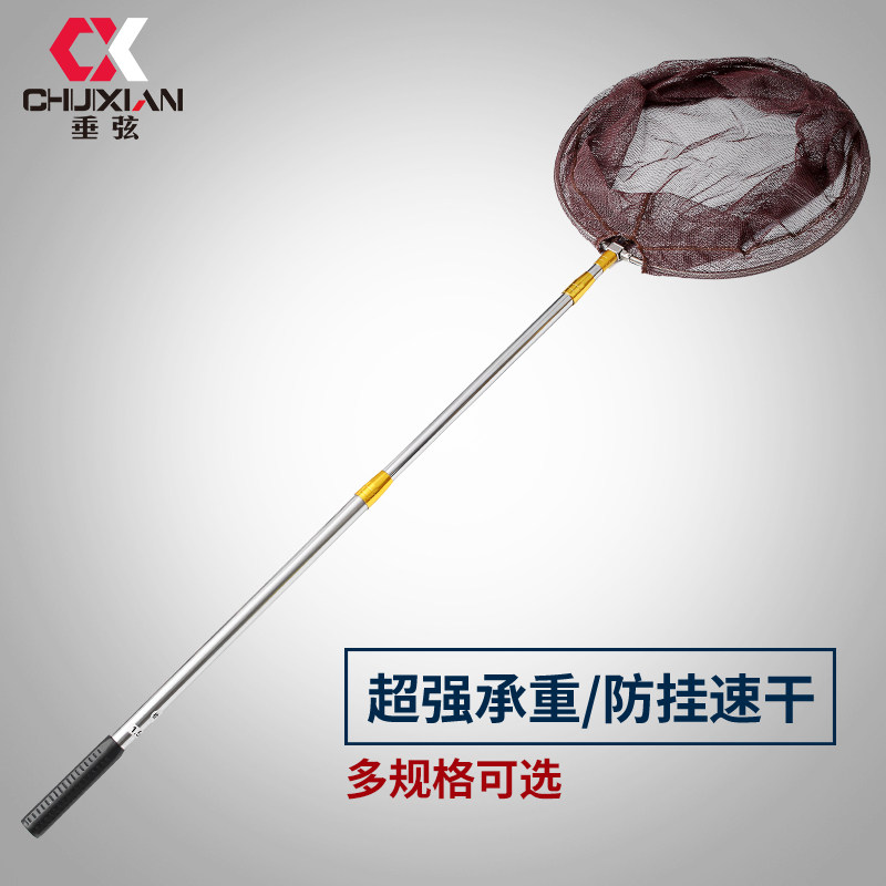 钓鱼抄网不锈钢实心捞鱼网兜可伸缩抄网杆套装抓鸡操网大物鱼抄网
