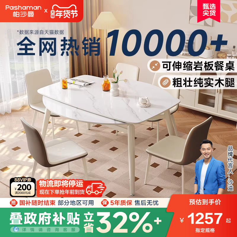 帕沙曼 伸缩岩板餐桌椅2026新款小户型餐桌可变圆桌子客厅家用