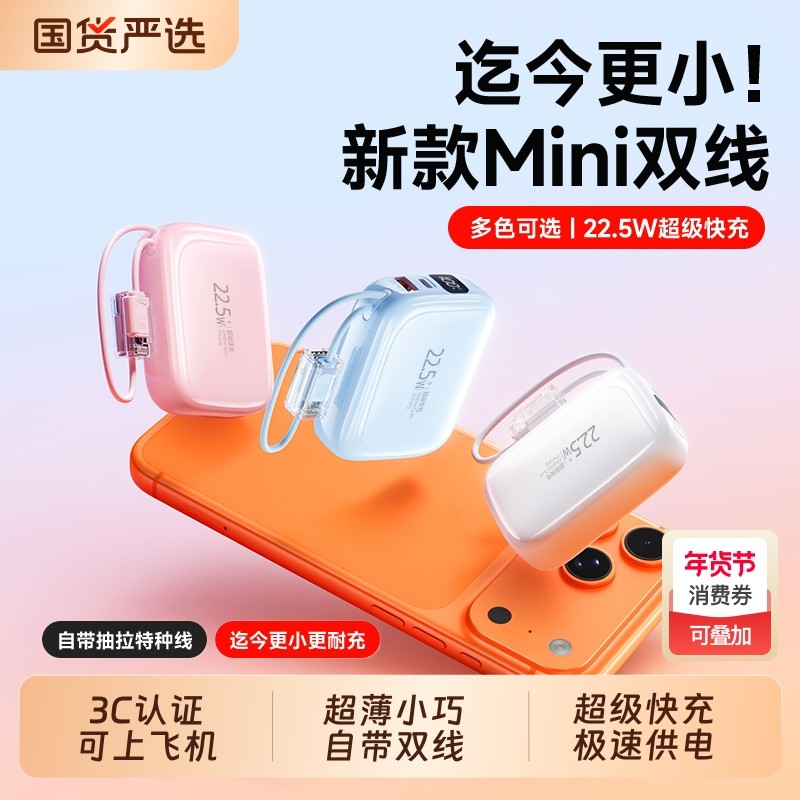 3C认证可上飞机2026新款充电宝自带线快充大容量超薄小巧便携迷你移动电源适用华为苹果17手机官方正品旗舰店