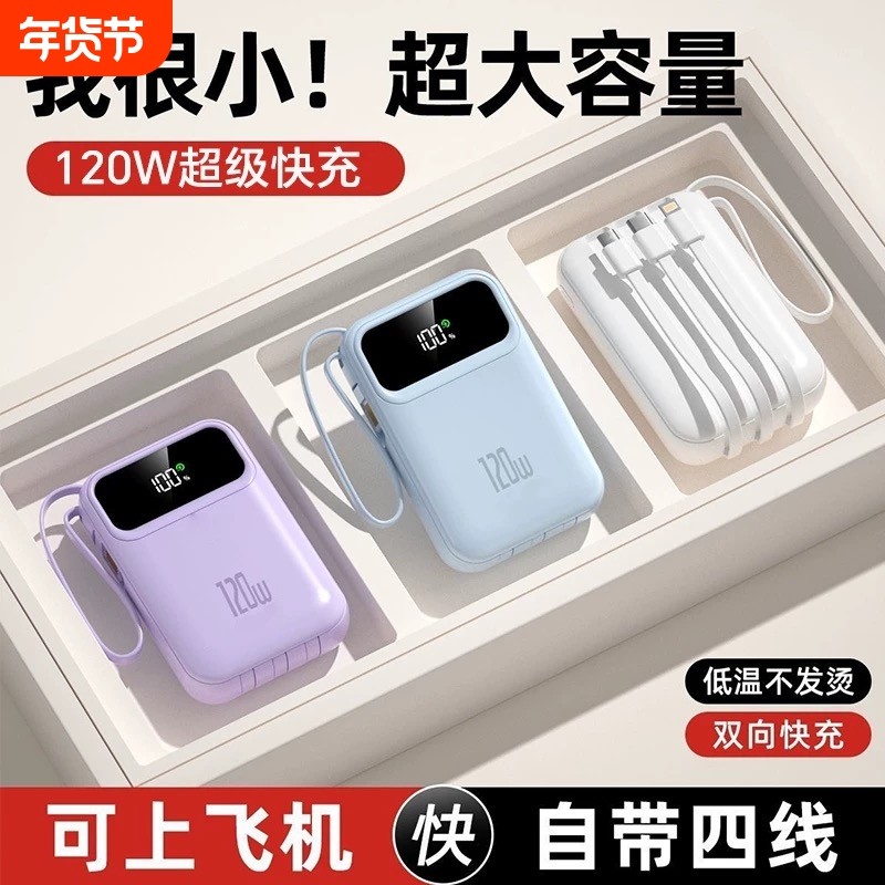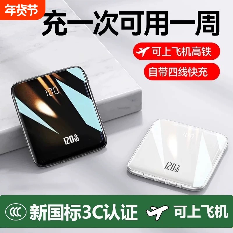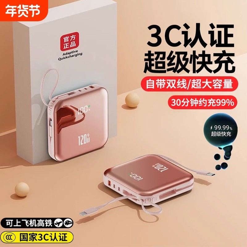 充电宝3c认证可上飞机2025新款充电宝自带线快充超薄小巧便携迷你移动电源适用于华为苹果专用官方正品旗舰店