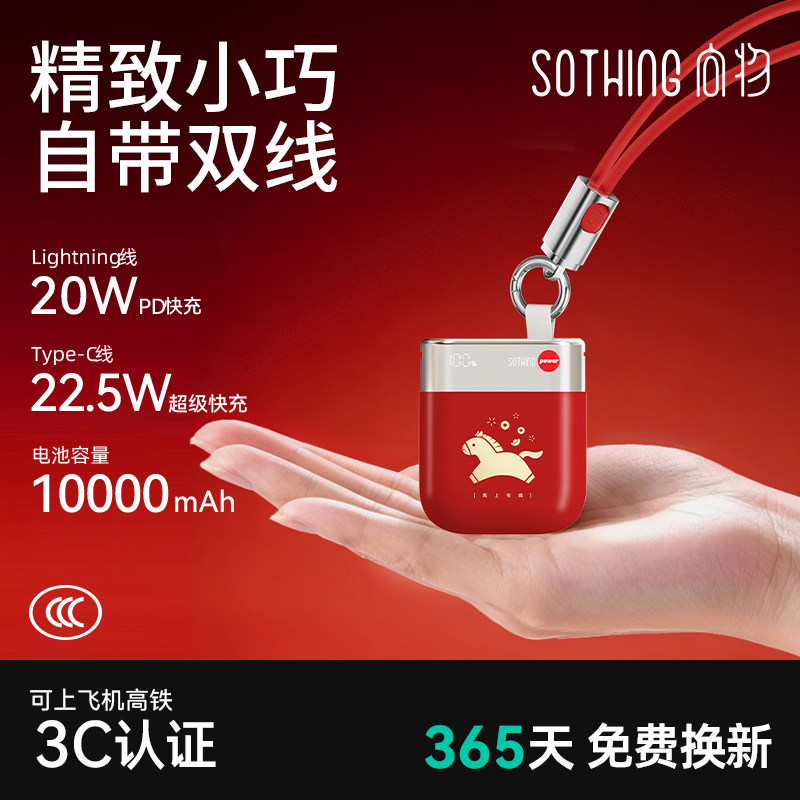 【3C认证】向物2026新款自带线充电宝马上有钱手机专用迷你移动电源10000mAh新春红色适用于苹果华为可上飞机