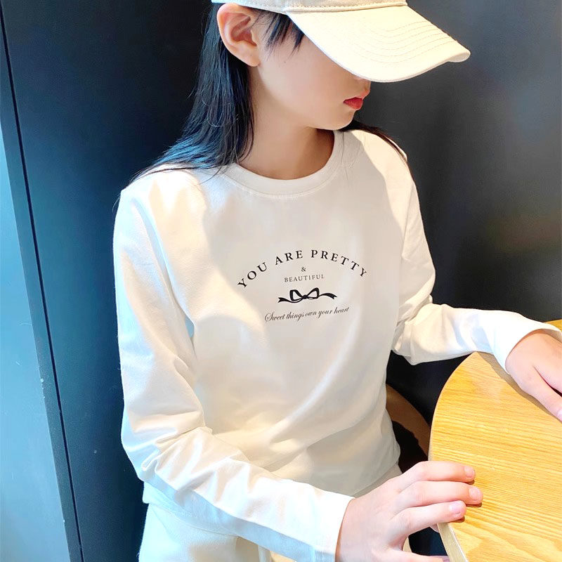 春装新款女童长袖t恤纯棉大码儿童打底衫内搭弹力中大童上衣T白色