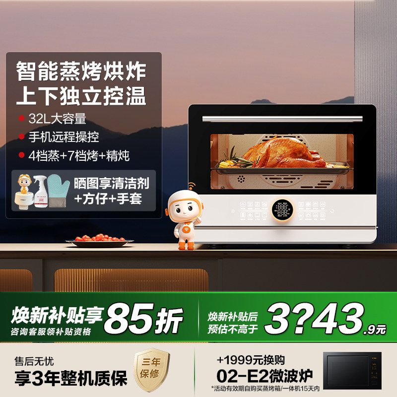 【新品】方太02-E3蒸烤炸一体机0嵌入式烤箱蒸箱家用智能蒸烤官方