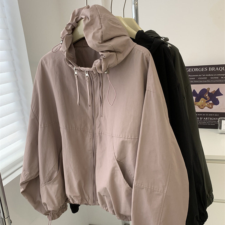 黑色工装外套女春秋宽松韩版百搭bf原宿风休闲夹克连帽风衣潮ins